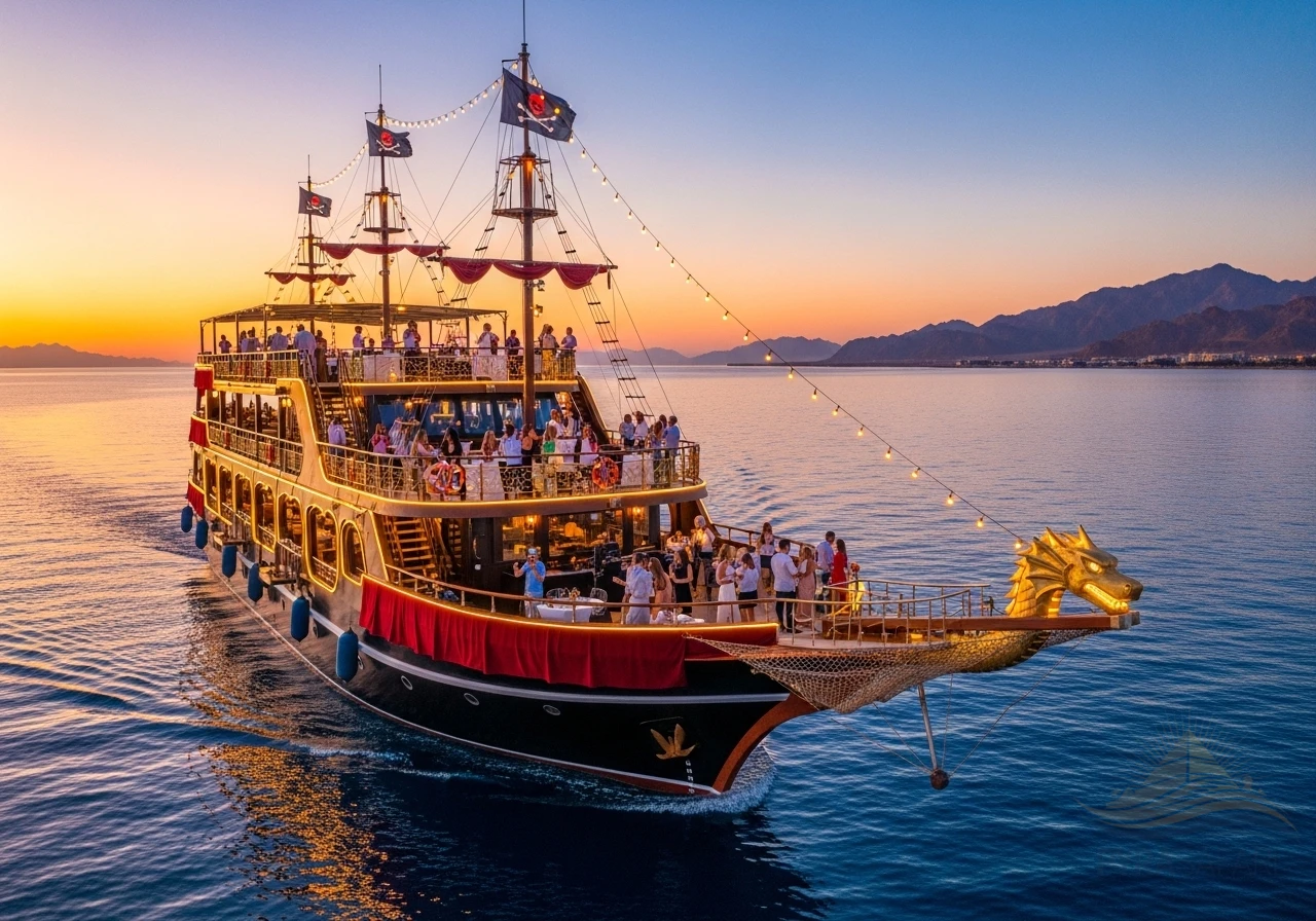 Embark on PyraSafari’s exclusive Pirates Dinner Cruise from Sharm El Sheikh, where the azure waters of the Red Sea meet a spectacular evening of luxury and adventure. This isn’t just a dinner; it’s a meticulously crafted, immersive experience designed to transport you and your loved ones into a world of swashbuckling entertainment, exquisite dining, and unforgettable memories, all departing directly from your hotel in Sharm El Sheikh.